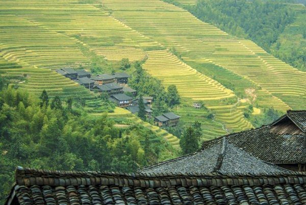 龙胜梯田是桂林地区一个规模宏大的梯田群,地处海拔 1916 米的崇山峻岭深处,梯田海拔最高处 1180 米,最低 380 米,垂直落差 800 米,面积 71.6 平方公里。这里坐落着几个少数民族古寨,居住壮、瑶两个民族。在第五次全球重要农业文化遗产国际论坛上,获得了全球重要农业文化遗产的正式授牌。
