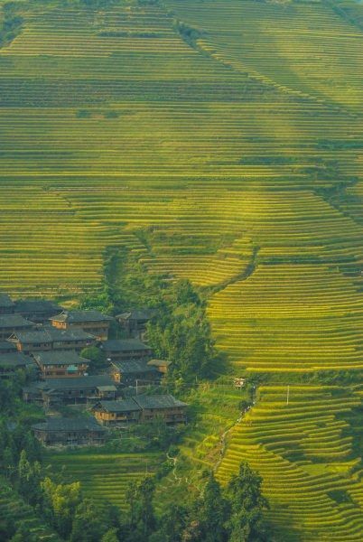 龙脊开山造田的祖先们当初没有想到,他们用血汗开出来的梯田,如今竟是一个伟大的实景艺术杰作。“站在梯田的最高处放眼望去,只感觉到脚下层层叠叠的梯田如潮水般涨起,以排山倒海之势奔涌而来,组成一个纵横开阖、酣畅淋漓的梯田群体,形成一个张扬着力与美的梯田世界,呈现出一种粗犷的美,令人震撼”。我用摄影礼赞丰收,劳动是世界上一切欢乐和美好事情的源泉,劳动是人类拥有的最可靠的财富。
